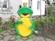 Можно проявить фантазию и сделать из нее, например, царевну-лягушку. Для этого из тех же пластиковых бутылок вырезать корону, а в лапки вложить стрелу.