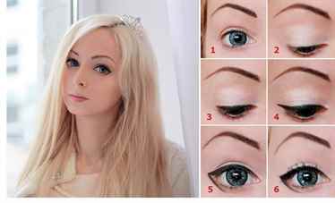 | Глаза | Нанесение светлых теней на все веко. Прорисовка четкой линии подводкой, желательно черной, с небольшим удлинением “кошачий глаз”. Искусственные ресницы для создания кукольного эффекта. Тушь для ресниц. | Светлые тени, черная подводка, тушь для ресниц, искусственные ресницы, клей для ресниц |