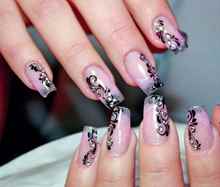 - Кружевной маникюр уже несколько лет занимает лидирующие позиции в своей популярности среди девушек. Поэтому с помощью вензелей можно сделать такой маникюр вручную либо же купить готовые наклейки с желаемым узором.