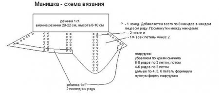 – Первые 14 петелек – левый рукав, вторые 14 петелек – правый рукав.
