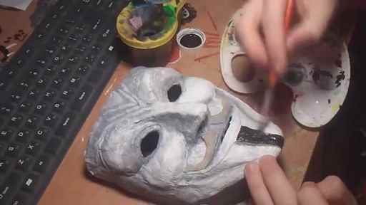 Теперь можно переходить к покраске. Для маски Гая Фокса традиционно используются черный и белый цвета, но вы можете выбрать любые оттенки по своему усмотрению. Используйте акриловые краски, так как они быстро сохнут и имеют хорошую адгезию к папье-маше. Наносите краску в несколько слоев, давая каждому слою высохнуть перед нанесением следующего. Это поможет достичь насыщенного цвета и равномерного покрытия.