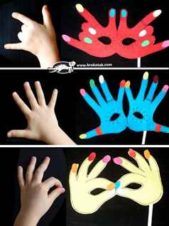 Прорисуйте на маске очертания пальцев, раскрасьте ногти – веселая маска готова!