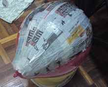 Для изготовления маски вам понадобятся: клей ПВА или клейстер, бумага (газета, писчая, крафт-бумага), немного терпения и усидчивости. Бумагу надо порвать на небольшие кусочки, пропитать клеем и аккуратно обклеить форму в несколько слоёв.
