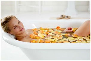 Приготовление ванны с антицеллюлитным эффектом: ванну наполняют теплой водой. В пену для ванны добавляется десять капель апельсинового масла и добавляется в воду. Проблемные участки нужно хорошенько растереть массажной щеткой. Для усиления эффекта можно добавить морской соли. Принимают такую ванну полчаса не менее двух раз в неделю.