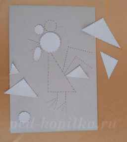 - При помощи трафаретов нарисуйте карандашом фигуры, из которых состоит рисунок. Иголкой проколите дырочки по контуру.
