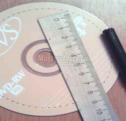 - Циркулем проведите круг по той части диска, где есть надписи – она будет изнаночной. Нагрейте иглу или тонкое шило и проколите дырочки на расстоянии полсантиметра друг от друга.