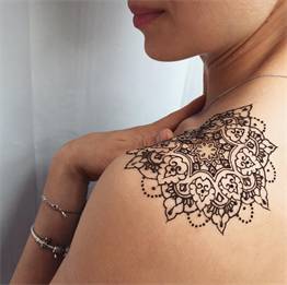 Временные татуировки: Мехенди — это временные татуировки, которые исчезают через несколько недель. Это позволяет людям экспериментировать с различными узорами и стилями, не опасаясь долговременных последствий. Многие выбирают мехенди на плече, чтобы подчеркнуть свою индивидуальность и изменить образ в зависимости от настроения или сезона.