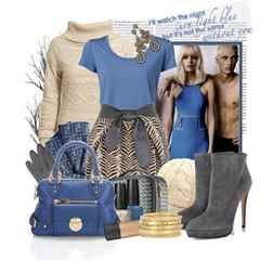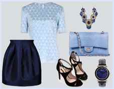 Выбирая нестандартное сочетание синего с серым, следует особое внимание уделить выбору оттенков, потому что образу можно придать свежесть или унылость. Стоит отдать предпочтение оттенкам синего – индиго и васильковому, а серого – без зеленоватых отливов. Аксессуары рекомендуется выбрать в белых или бежевых тонах (перчатки, туфли, сумка).