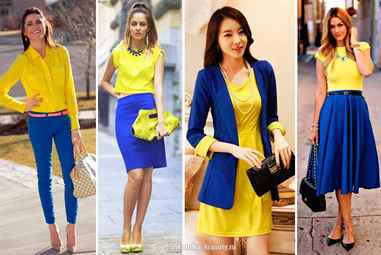 Идеальным в сезоне весна-лето будет ансамбль синих и желтых цветов. В большинстве случаев, такие цветовые решения встречаются во время отдыха на берегу моря, так как сама природа часто подталкивает на выбор таких цветов. Получить хороший оригинальный офисный вариант можно, если нежно-желтую блузу дополнить темно-синей юбкой или брюками.