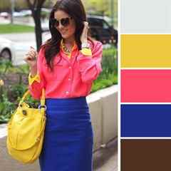 Эти цвета располагаются рядом в цветовом круге, образуют согласованные, элегантные образы и прекрасно дополняют друг друга. Для более яркого образа отдайте предпочтение розовым или лиловым оттенкам. Не рекомендуется сочетать два этих цвета темных тонов.