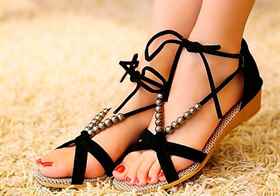 | Сандалии на плоской подошве | Кожа, текстиль, плетеные материалы | Тонкие ремешки, массивные пряжки, декор (камни, бусины) |