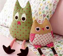 Интересным и оригинальным украшением кровати станут совы с лапами. Для этого выкройки делаются по старой схеме, где сова имеет округленное тело с ушками и глазами, но в данном случае используется мягкий материал, например, хлопок или джинсовая ткань. При этом каждую часть птицы можно делать разного цвета и использовать другой тип ткани.
