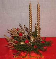 Вот несколько интересных фактов о создании новогодних экибан из еловых веток, шишек, свечей и живых цветов: