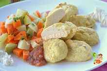 Второй вариант – куриный суп с вермишелью. Для него вам понадобятся: 100 г куриного филе, 1 морковь, 1 маленькая картофелина и 30 г вермишели. Куриное филе отварите до готовности, затем нарежьте на мелкие кусочки. В бульон добавьте нарезанные овощи и варите до мягкости. В конце добавьте вермишель и готовьте еще 5-7 минут. Суп можно посолить по вкусу, но для малышей лучше обойтись без соли.