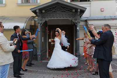 Празднование после регистрации: В России после официальной регистрации брака молодожены часто отправляются на фотосессию и затем празднуют с гостями на банкетах. В некоторых западных странах, таких как Италия, свадьба может начинаться с церемонии в церкви, после чего следует длительный банкет, который может продолжаться до поздней ночи, с множеством тостов и развлечений.
