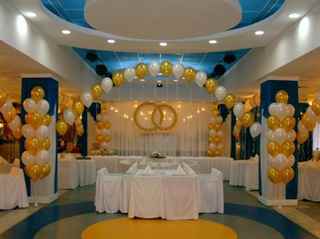 Не менее интересным и привлекательным станет оформление свадьбы шарами. Дизайн таких свадеб поражает оригинальностью и красотой композиций из воздушных шариков. Различные цепочки и гирлянды, колонны и просто взвивающиеся к потолку скульптуры сердец, лебедей и колец – выбор красивых украшений просто восхищает своей невероятностью и привлекательностью.