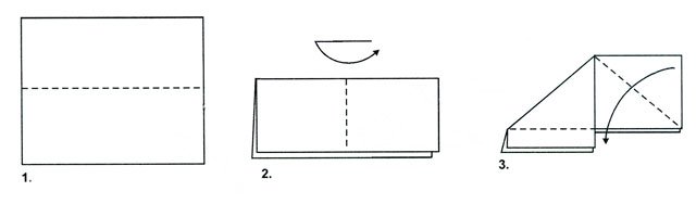 Начнем с того, что сложим квадратный лист пополам по диагонали, чтобы получить треугольник. Затем разверните его обратно, чтобы на бумаге осталась видимая линия сгиба. Теперь сложите верхние углы треугольника к центральной линии, чтобы они встретились в её середине. Это создаст форму, напоминающую стрелу.