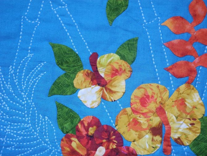 Аналогичная техника создания картины из кусочков ткани, обладает своими уникальными особенностями, заключающимися в том, что для их изготовления не используются нитки и иголки. Это считается преимуществом, поскольку, если человек не умеет шить, то он все равно может заняться пэчворком.