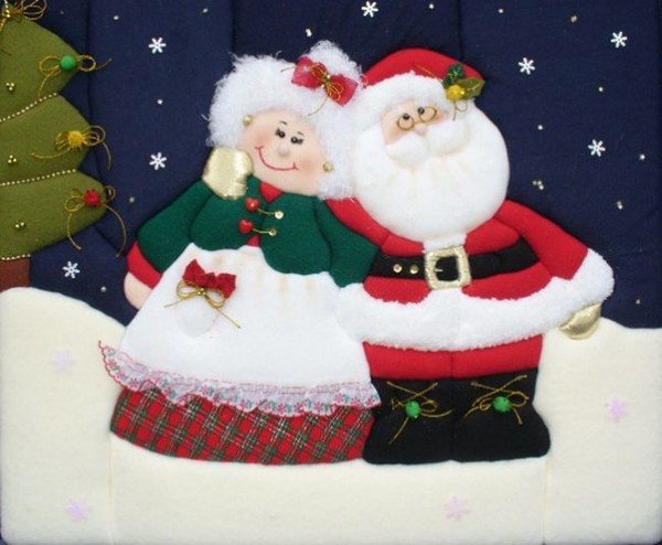 Нужно запастись кусочками ткани и тонкой кожи. Цвета: красный, белый, голубой, золотой, зеленый, а для лица Деда Мороза потребуется розовые лоскуты. Обычный картон обтягивают ситцем. Если основным фоном будет снег, следует взять белую или голубоватую ткань.