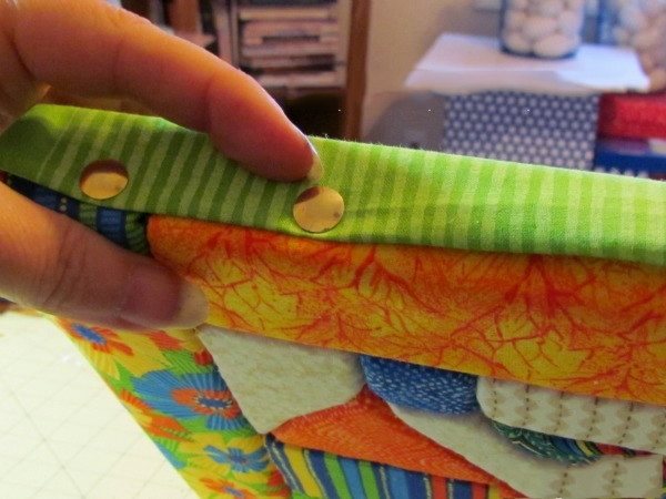 Накалываем контур кнопкой. Теперь нужно взять ткань. Лучше всего работать с трикотажными лоскутами, они хорошо тянутся и не выскакивают из прорезей. Рекомендуется заранее распределить лоскуты: какой куда пойдет.