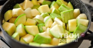 - Основные ингредиенты – кабачки и картофель, и первых должно быть примерно на треть больше, чем второго;