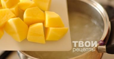 - Пару картошин сварите целиком, ну можно пополам разрезать при желании.