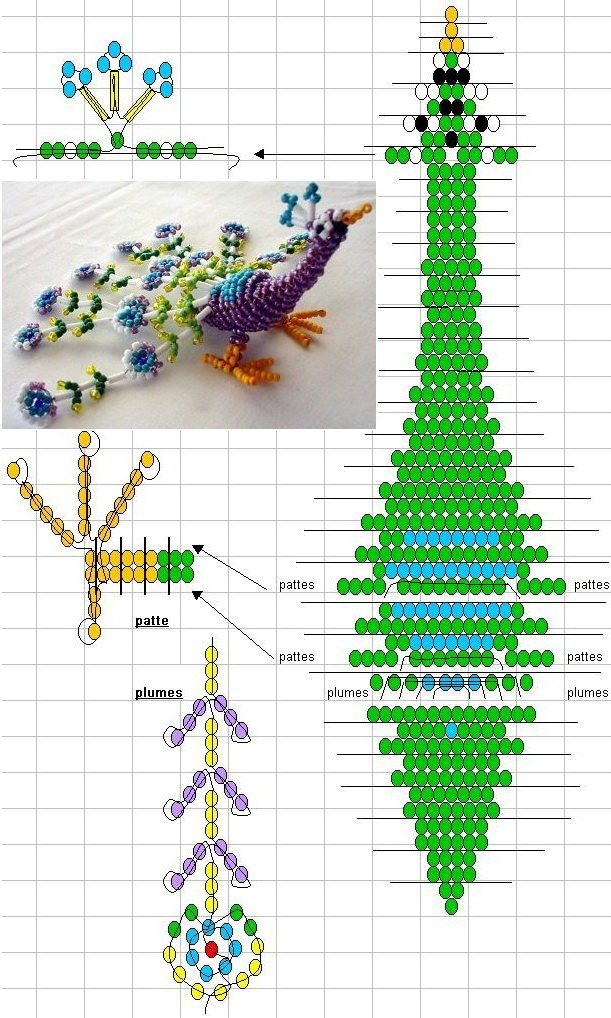 Схема для плетения павлина из бисера