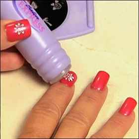 | Перенос рисунка на ноготь | Штамп (стемпер), лак для стемпинга | Быстро и аккуратно прижмите штамп к пластине, чтобы захватить рисунок. Затем, таким же образом перенесите рисунок на ноготь. |