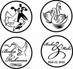 Чаще всего на печатях изображают инициалы или имена новобрачных и дату бракосочетания. Кроме этого, могут быть нарисованы голуби, сердечки, переплетенные кольца, символические изображения жениха и невесты в обрамлении орнаментов роскошного дизайнерского оформления.