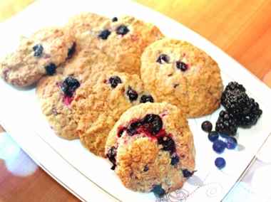 - Если дети любят и хорошо переносят ягоды, можно вдавить в каждую печеньку по одной ягодке – смородину, ежевику или вишенку;