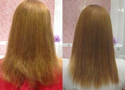 Голову вымыли и два раза мазали разными составами. Потом вытянули волосы утюжком. Никаких неприятных ощущений во время процедуры я не испытала. Увы, этот эффект сохранился на моих волосах на весьма непродолжительный период времени — две недели А обещали месяц и более. Никому не посоветую эту процедуру».