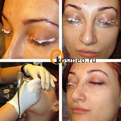 Во время процедуры мастер периодически проверяет, как выглядит результат, и вносит коррективы по желанию клиента. После завершения татуажа область вокруг глаз обрабатывается антисептическим средством, чтобы предотвратить инфекцию.