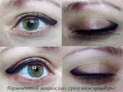 Помимо этих двух способов, можно с помощью перманента нанести на веки стрелки. Они могут быть на обоих веках или на одном, могут быть разной длины. Подводить сразу оба века специалисты не рекомендуют, так как лучше сделать это поэтапно, сначала верхнюю стрелку и подождать заживления, а затем, если будет необходимость, то и нижнюю.
