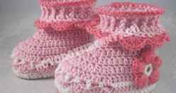 Для маленькой принцессы можно связать вот такие чудные пинетки, похожие на сапожки из-за высоких боковин. Связать их сможет даже новичок в этом деле.