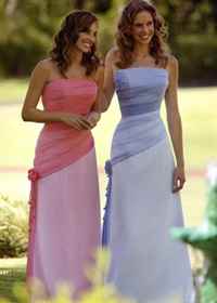 Платья не должны быть разными. Например, фасон и оформление одинаковое, а расцветка разная.