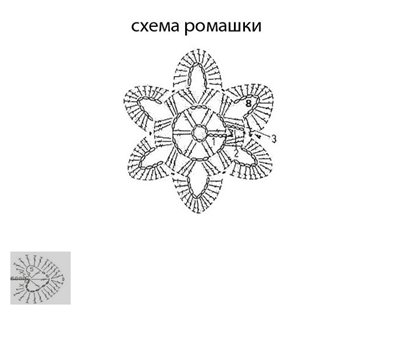 Цветок вывязывается из цепочки воздушных петель по схеме №3.