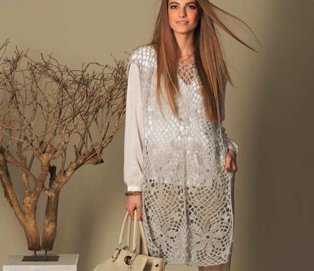 - Детские же модели вязать еще проще, так как их вяжут ажурной сеткой или столбиками с накидом. По мере роста ребенка изделие можно удлинять.