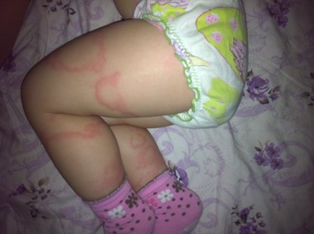 Редко встречаются такие серьезные проявления, как отек Квинке, крапивница, симптомы энцефалопатии, анафилактический шок и судороги. Обычно при этом нет повышения температуры. Возможность появления таких состояний очень мала и встречается обычно у одного ребенка из миллиона. Также может появиться в месте укола абсцесс, как показано на фото.
