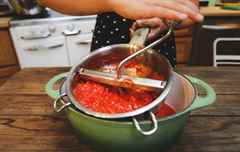 Когда помидоры станут мягкими, снимите кастрюлю с огня и дайте немного остыть. Затем с помощью блендера или мясорубки измельчите помидоры до состояния пюре. Если вы предпочитаете более однородную текстуру, можно процедить получившееся пюре через мелкое сито, чтобы избавиться от семян и кожицы.