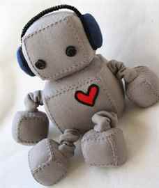 А можно пойти дальше и скомпоновать рисунок. Для этого предполагаемую выкройку делят на несколько секторов, каждый из которых отвечает за отдельный цвет фетра. Когда все детали будут нанесены на фетр и вырезаны, их сшивают, получая две детали, которые сшиваются между собой, получая готовую основу робота. Он наполняется синтепоном и сшивается отверстие, через которое протягивали наполнитель.