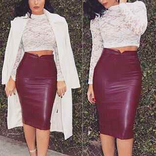С чем носить прямую юбку цвета бордо
