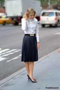 | Юбка-плиссе | Блузка с длинным рукавом, пиджак, лоферы | Блузка с рюшами, туфли на шпильке, тонкий ремешок | Толстовка, удобная обувь |