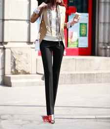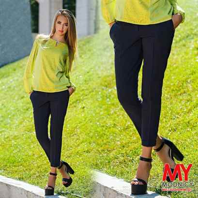 Летом укороченные черные брюки в обтяжку прекрасно сочетаются с белым или цветным топом без рукавов, белой майкой и трикотажным жакетом. Летний образ дополнят белые кеды или тонкие босоножки на плоской подошве.