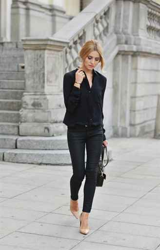 Сочетайте черные брюки с классической белой рубашкой для создания элегантного офисного образа. Добавьте жакет в тон, чтобы подчеркнуть профессиональный стиль, и завершите лук черными лодочками или оксфордами.