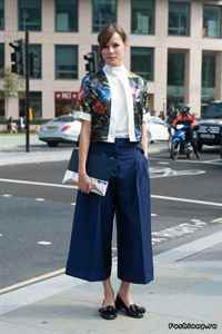 Кюлоты разного кроя и фактуры смотрятся совершенно по-разному и создают разный образ, и чем мягче ткань, тем женственнее кюлоты сидят на фигуре. Очень стильно смотрятся джинсовые кюлоты с топами с различными яркими принтами и надписями.
