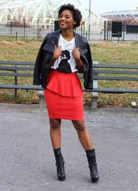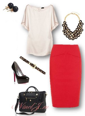 С чем носить красную юбку-карандаш?