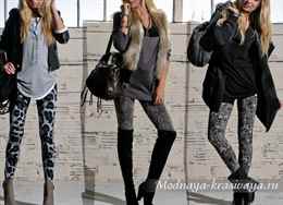 Напротив, для вечеринок никак не потеряли своей актуальности леопардовые и змеиные принты. Такие лосины необходимо надевать под более спокойный верх.