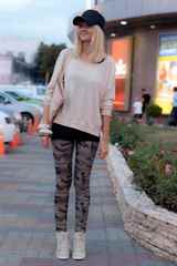 Во-первых, выбирайте лосины с камуфляжным принтом или в нейтральных цветах, таких как оливковый, серый или черный. Эти оттенки легко комбинируются с другими элементами гардероба и подчеркивают военный стиль. Лосины могут быть как матовыми, так и с легким блеском, что добавит интересный акцент в ваш образ.