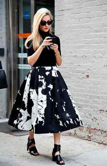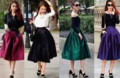 Низеньким дамам стоит обратить пристальное внимание на пышные миди немного ниже колен, причем не забудьте надеть каблуки. Такая комбинация выгодно вытянет ваш силуэт.