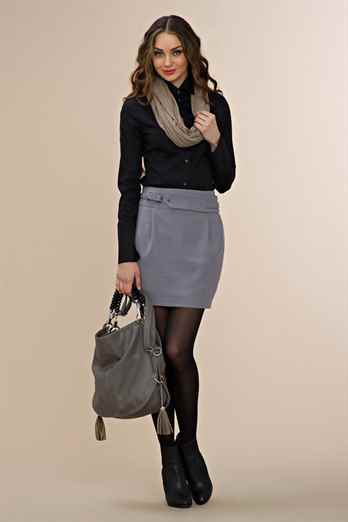 С чем сочетать серую юбку? Поэтому его можно комбинировать с широкой гаммой пастельных и насыщенных цветов. Серый прекрасно гармонирует с красным. Бежевый цвет смотрится эффектно на фоне серой юбки. Он займет достойное место в комплекте взамен кукольных розовых и сиреневых оттенков.